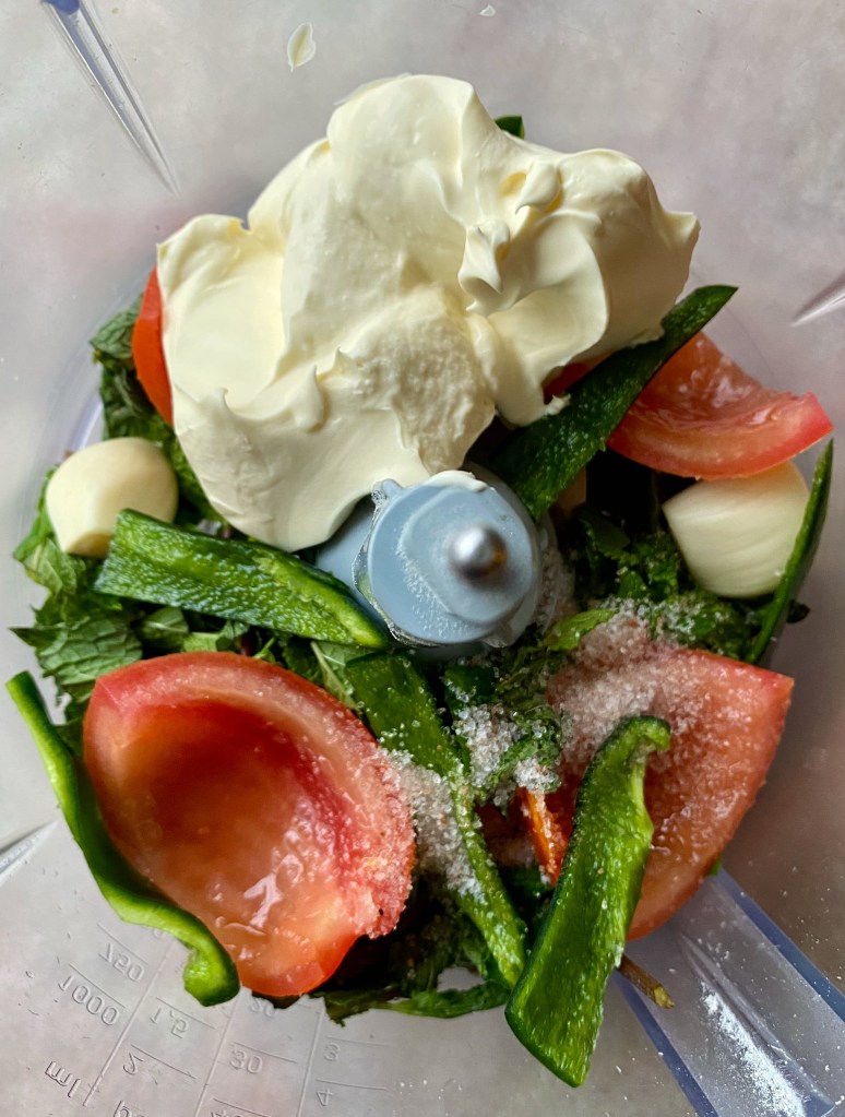 Ha alle ingrediensene i din foodprocessor, og bland til ønsket konsistens.