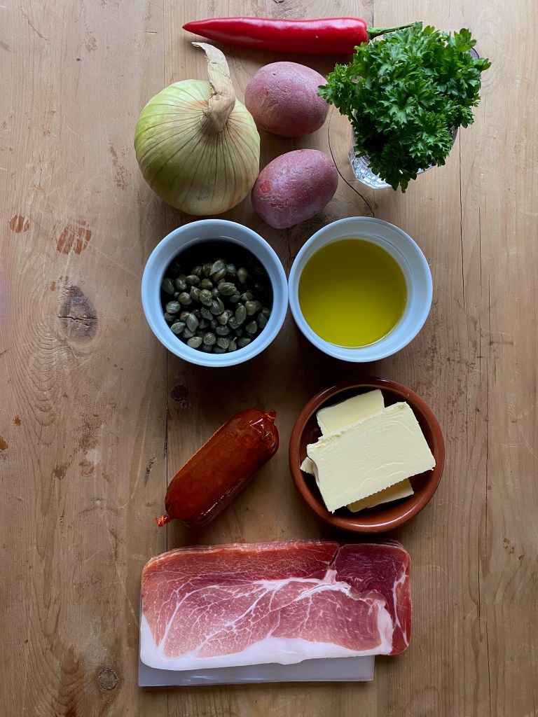 Nduja er en deilig og allsidig spesialitetsingrediens. Denne italienske salamien er myk, krydret og røyksmakende, og en liten klatt av den kan gjøre en vanlig rett til noe uforglemmelig. Sammen med smør eller olje smelter den i stekepannen og blir en salamisalt saus, som fester seg på potetbitene. Med strimlet skinke og noen egg, får du en super søndagsbrunsj.
